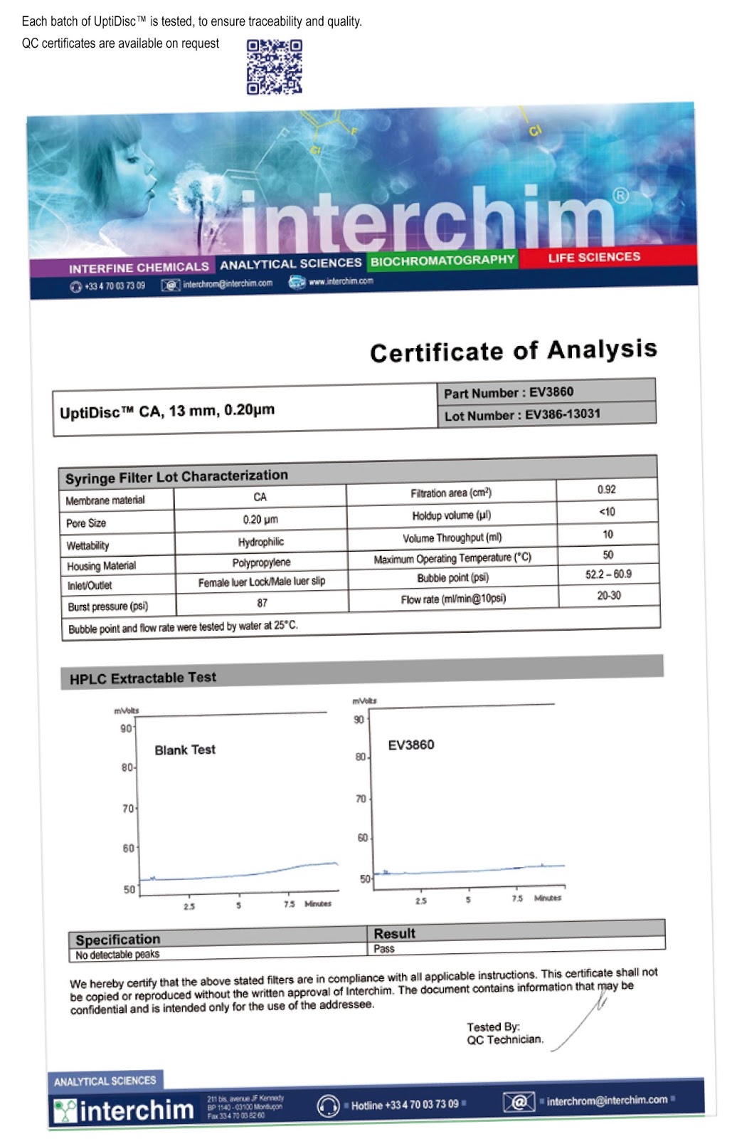 Chaque lot d’ UptiDisc ™ est testé pour assurer sa traçabilité et sa qualité.