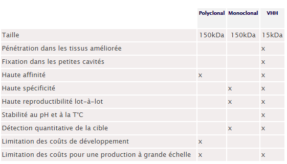 - Propriétés différentes des anticorps conventionnels => excellents candidats pour les médicaments.