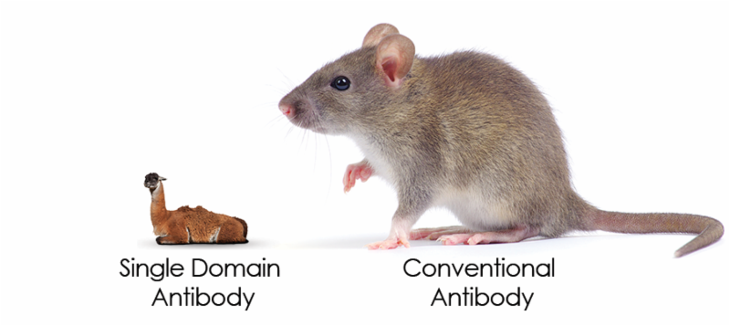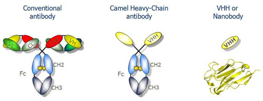 Ces petites protéines sont la plus petite entité fonctionnelle de l’anticorps (~15kDa), également connues sont le nom de « nanobodies » ou VHH, elles sont isolées à partir des domaines variables des chaines lourdes de camélidés.