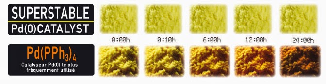 En comparaison avec son analogue Pd(PPh3)4, le superstable Pd(0) catalyst peut être stocké pendant des années à l’air et à température ambiante sans aucune décomposition.