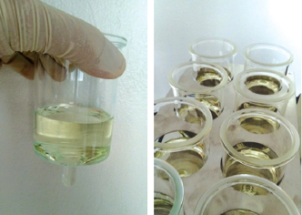 Le test comparatif de l’évaporateur sous flux gazeux Labtech et l’évaporateur rotatif a été réalisé en utilisation un échantillon contenant 100mL d’hexane mélangé à un témoin de 1mL d’huile.