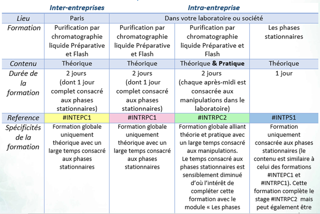 Interchim, organisme agrée, vous propose ses formations afin de partager son expertise. Inscrivez-vous dès maintenant à notre première thématique : “Purification par chromatographie liquide préparative et Flash” en inter-entreprises ou intra-entreprise.