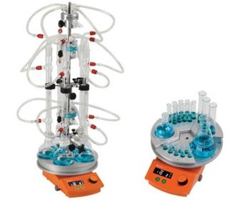 - Grâce à des inserts, des flacons à fond rond de 5 ml à 500 ml ont pu être utilisés sur la même plaque de base, en même temps.