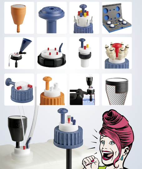 – Bouchons adaptés à la collecte des solvants (Safety Waste Caps)