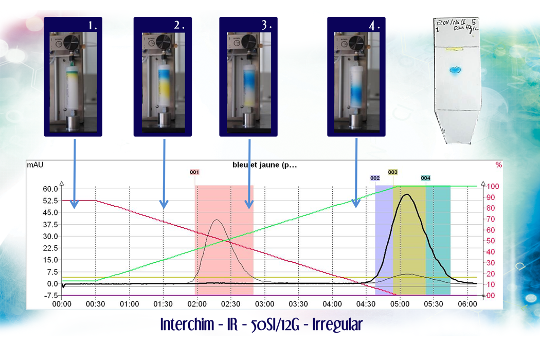 Nous avons comparé la purification de deux colorants alimentaires sur une colonne standard et une colonne puriFlash.