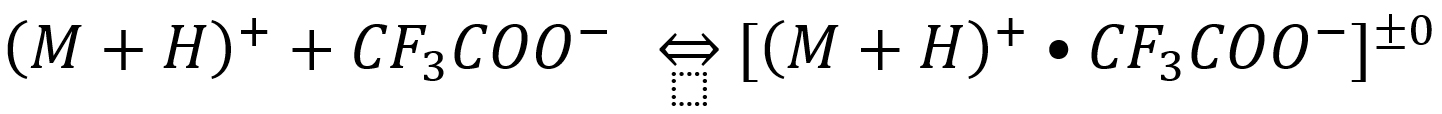 Le TFA se lie fortement aux analytes à purifier, et il en résulte alors une réduction du signal MS dans les meilleurs des cas, pouvant aller jusqu’à la suppression total du signal, à cause de l’équilibre suivant :